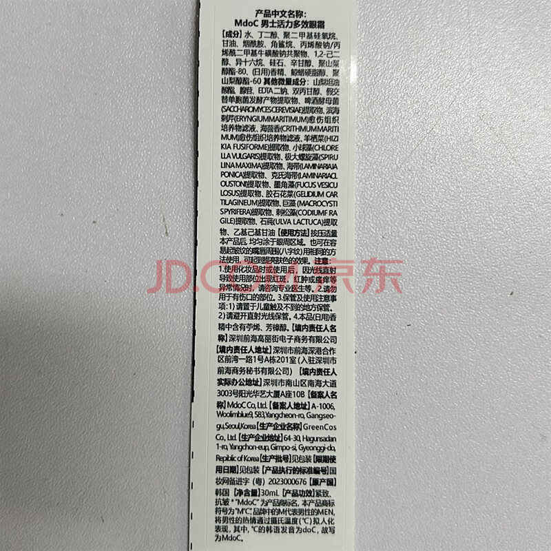 商品相册:蒙度士(MdoC)男士专用活力多效眼霜30ml(淡化黑眼圈眼袋细纹紧致修护抗皱)第