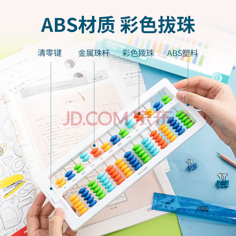 商品相册:得力(deli)儿童算盘二年级下 7珠13档珠心算加减法教具人教版同步 一键还原教学 学生教具生日礼物开学文具第1张/共3