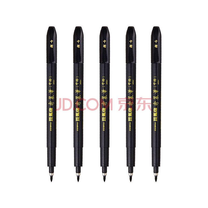 商品相册:斑马牌(ZEBRA)中楷 学生毛笔练字笔 书法笔请柬笔 WF3 黑色笔杆 5支装第1张/共6