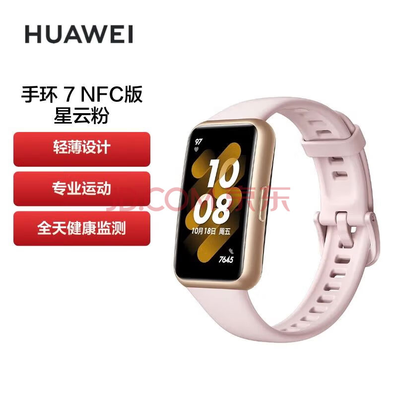 商品相册:华为(HUAWEI)运动智能手环7 NFC版 (原野绿/星云粉 颜色随机发货)第