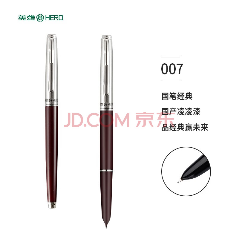 商品相册:英雄(HERO)钢笔经典007 酒红色暗尖铱金钢笔墨水笔学生单支装 F尖第