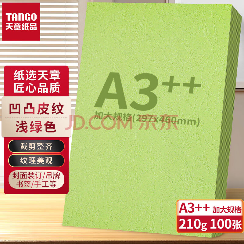 商品相册:天章 (TANGO)A3++凹凸皮纹纸/压纹纸/封面纸/云彩纸/封皮纸 彩色卡纸标书封面 浅绿色210g 100张/包第1张/共6