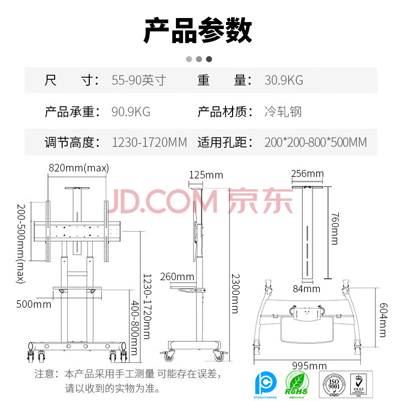 商品相册:ProPre 移动电视支架 55-90英寸通用落地电视挂架电视推车视频会议显示屏适用于TCL海信创维华为等品牌第