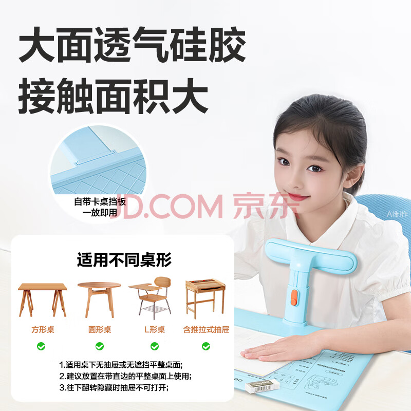 商品相册:得力坐读写坐姿矫正器学生写字学习低头近视驼背姿势纠正器正姿书写免安装开学文具生日礼物男女孩蓝第