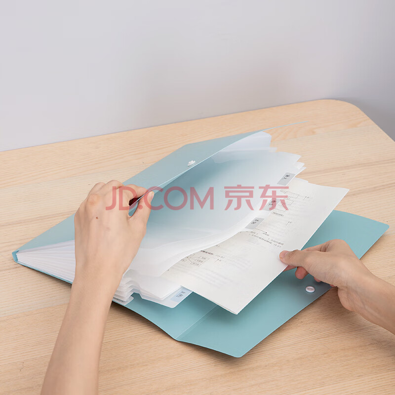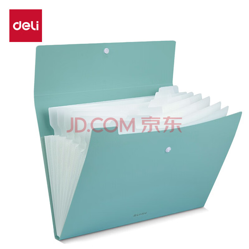 商品相册:得力(deli)乐素系列 8格按扣多层文件夹风琴包 学生试卷收纳袋 办公用品文件资料保护 薄荷绿72456第1张/共7