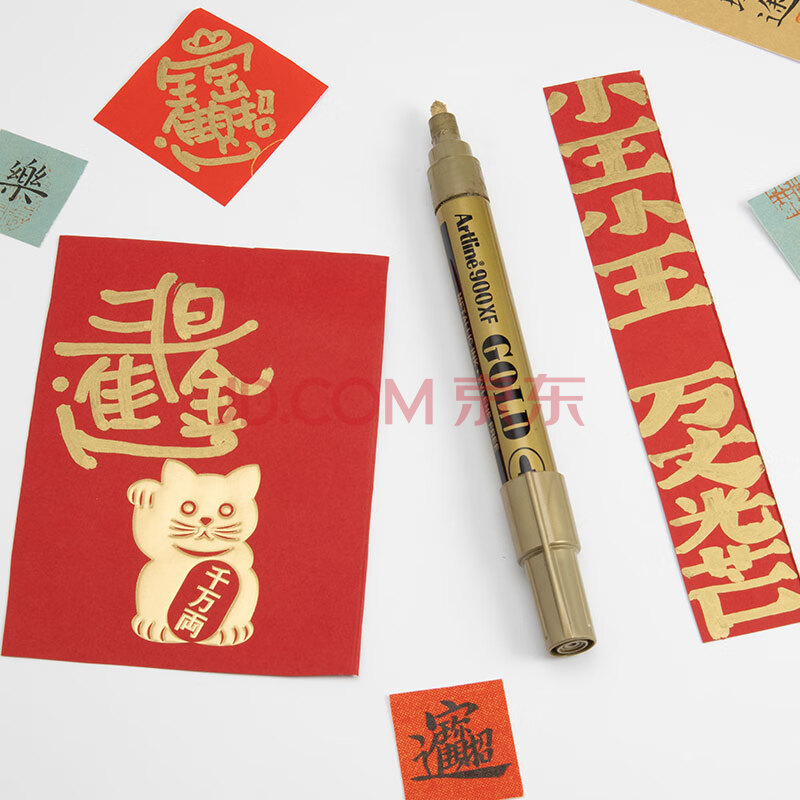 商品相册:旗牌(Shachihata)Artline 金银速干防水不褪色碑文补漆笔 签字笔 记号笔 涂鸦笔 油漆笔圆头2.3mm金EK-900第