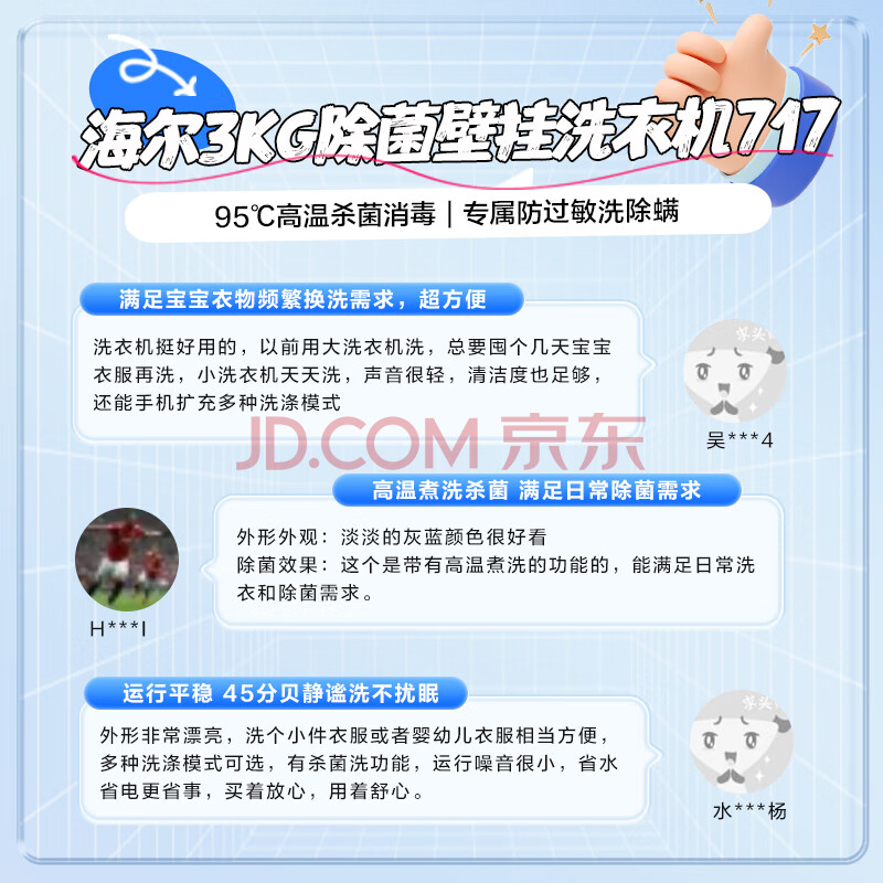 商品相册:海尔(Haier)壁挂内衣洗衣机小型 婴儿儿童内衣裤洗衣机 3KG 全自动迷你洗衣机 一级能效717PLUS第