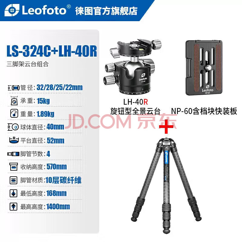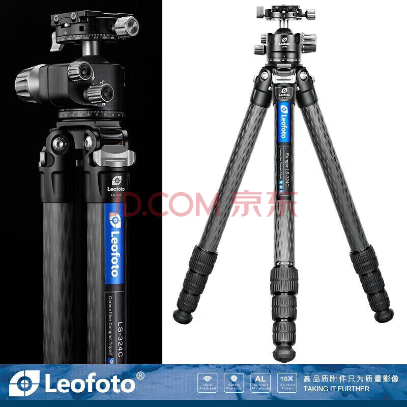 商品相册:徕图(Leofoto) 三脚架 云台 碳纤维手机相机微单单反佳能摄影摄像轻便旅行风光三脚架云台套装 LS-324C+LH-40R第