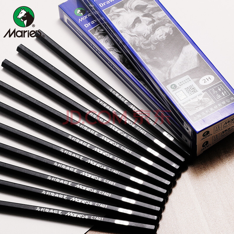 商品相册:马利(Marie's)2B绘画铅笔12支装 素描绘画绘图考试六角木杆炭笔铅笔 学生初学者考试画画专用C7401 速写 马克笔绘画第