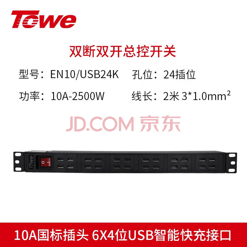商品相册:TOWE同为24位USB孔智能快充插座工业用多口usb智能过载过压充电插线板排插带总控开关EN10/USB24K第
