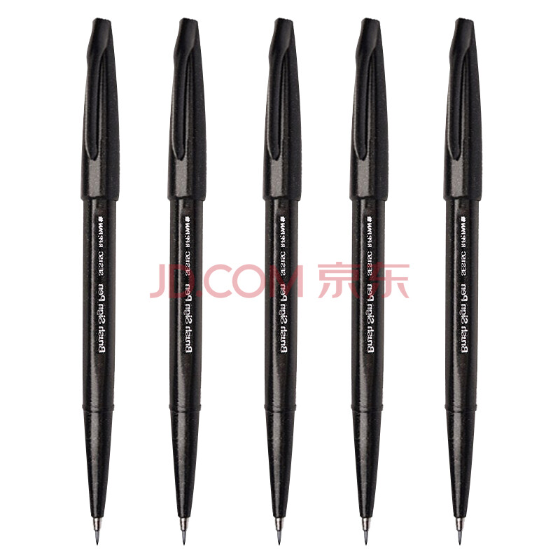 商品相册:派通(Pentel )彩色软毛笔秀丽笔 弹性笔尖水性笔Touch手帐书信贺卡用 SES15C黑色 5支装第