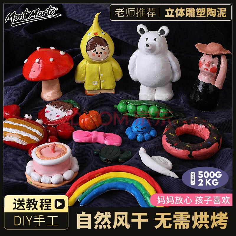商品相册:蒙玛特(Mont Marte)陶泥石塑粘土白色2kg 儿童diy手工制作陶艺立体雕塑材料 自然风干塑形泥软土MMSP0007 速写 马克笔绘画第1张/共8