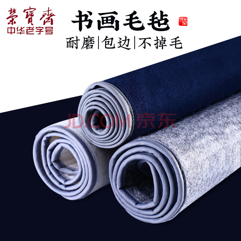 商品相册:荣宝斋 书画毛毡垫 加厚初学者学生写毛笔字垫布 练字文房书法国画专用 可洗毛毡 蓝色50*80第