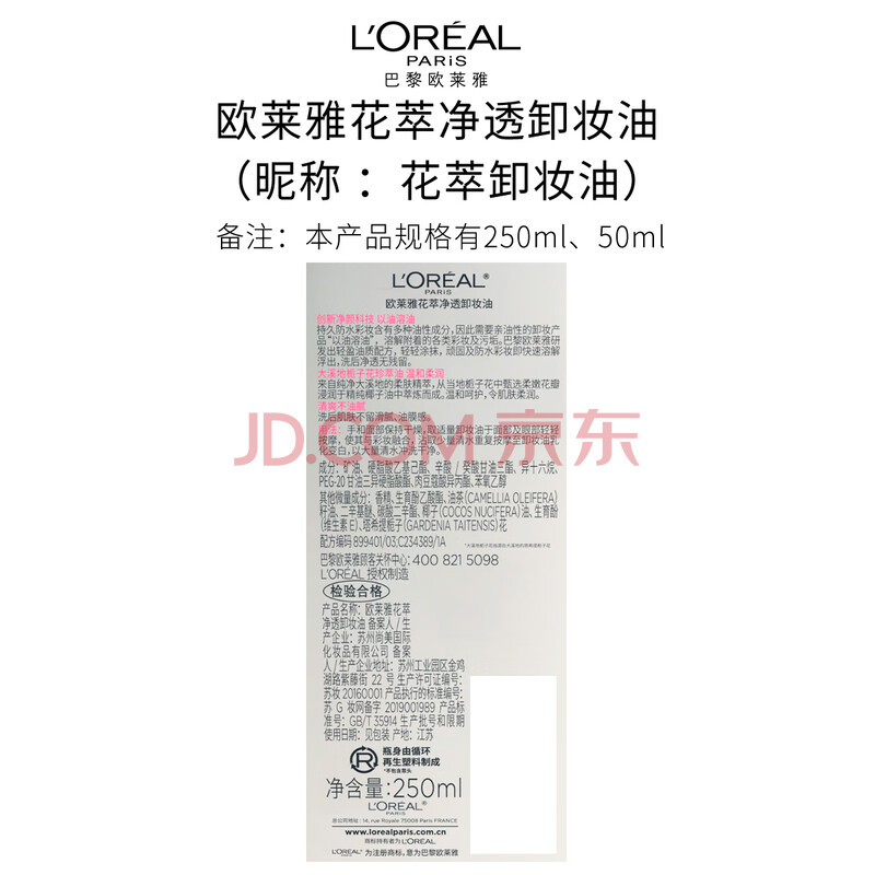 商品相册:欧莱雅花萃卸妆油250ml温和眼唇卸面部清洁敏感肌护肤品生日礼物第