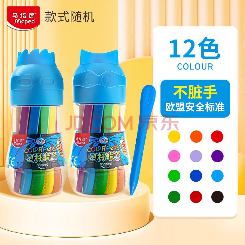 商品相册:马培德(Maped)【开学必购】大头塑料蜡笔 幼儿学生不脏手绘彩蜡笔 初学美术涂鸦画笔 862412EC【12色】美育工具第