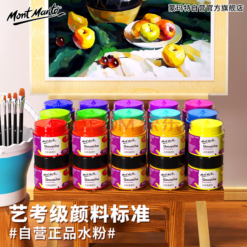 商品相册:蒙玛特(Mont Marte)水粉颜料100ml黑色 水粉画颜料学生儿童画画美术罐装颜料 初学者可水洗绘画颜料PGU0131第