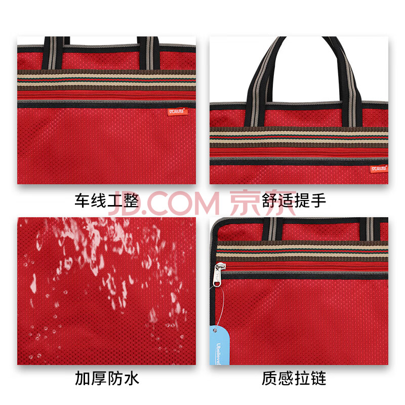 商品相册:优必利 竖版多功能手提文件袋 办公商务 牛津布加厚双层文件包公文包防水 手提竖版带底 1个装 1203红色第