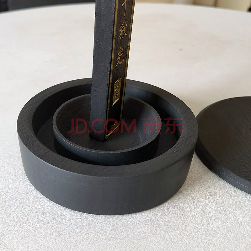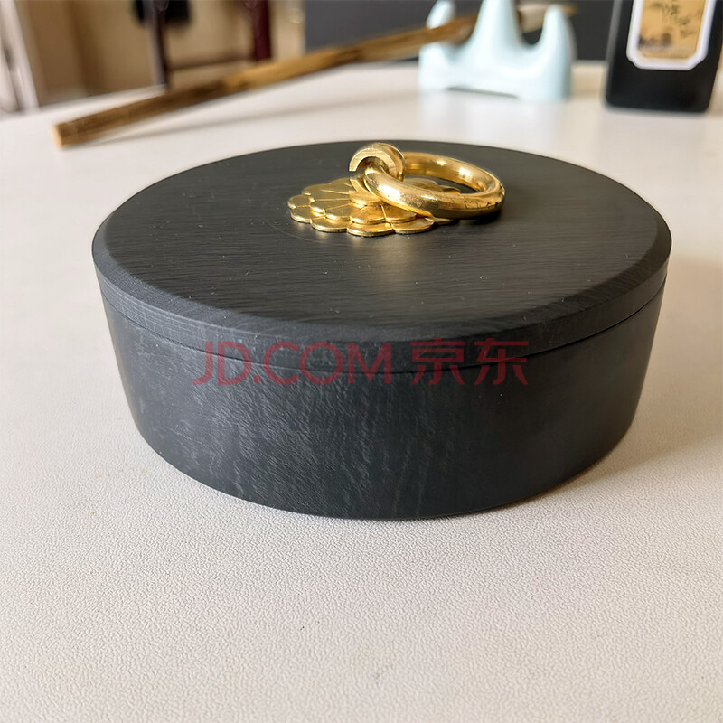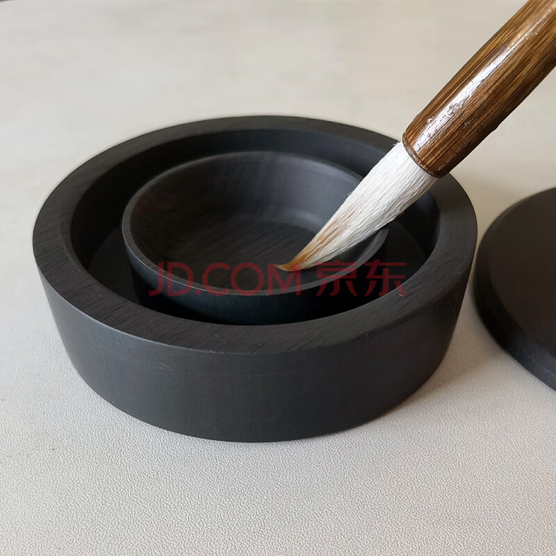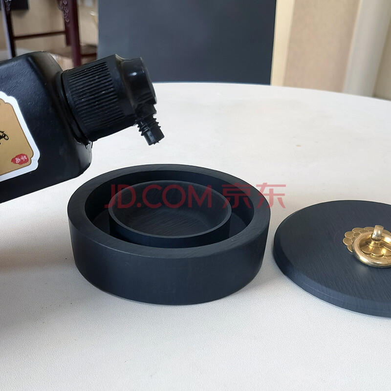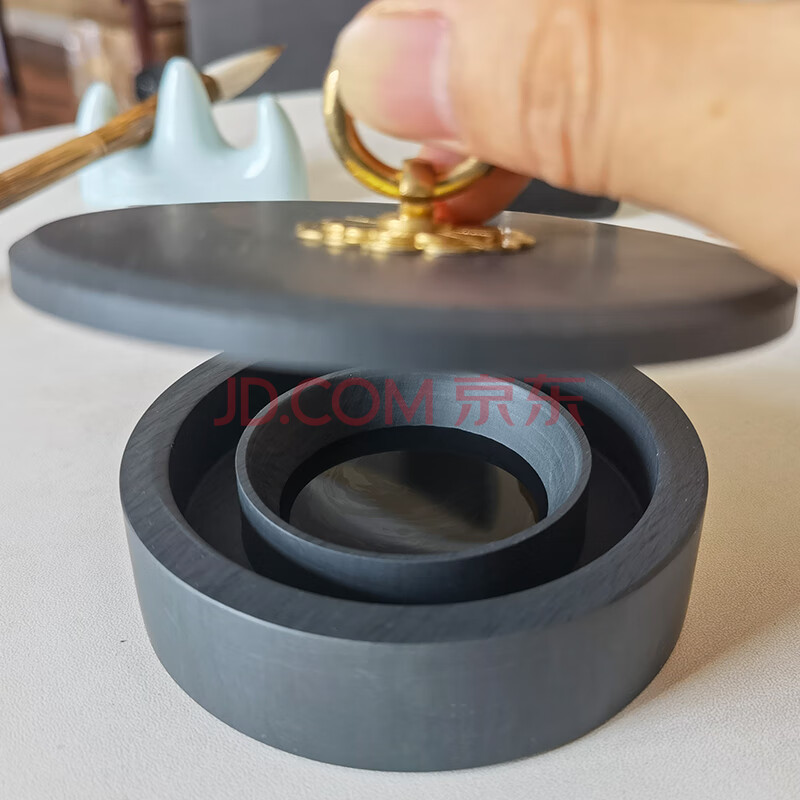 商品相册:芬尚 火锅砚台 双圈长效保湿砚台池墨盒 天然原石水波纹 铜环砚盖不干墨 学生初学毛笔书法绘画盛墨汁用第