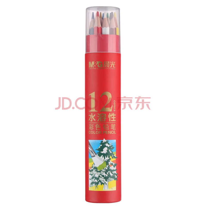 商品相册:晨光(M&G)文具12色水溶性彩色铅笔学生美术填色含画笔红筒装AWP36809儿童生日开学礼物女孩手工第