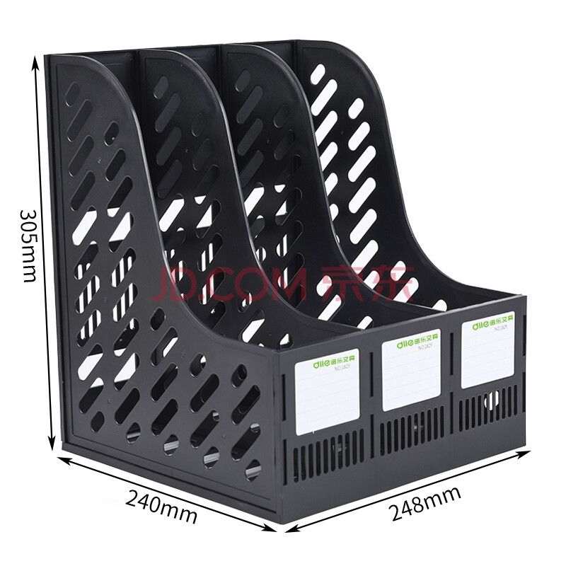 商品相册:递乐 加厚加固三联文件框/文件栏/文件架/资料架/三栏文件筐 办公用品 1829黑色第