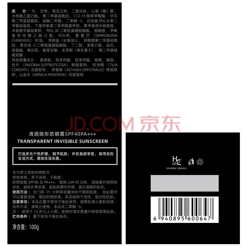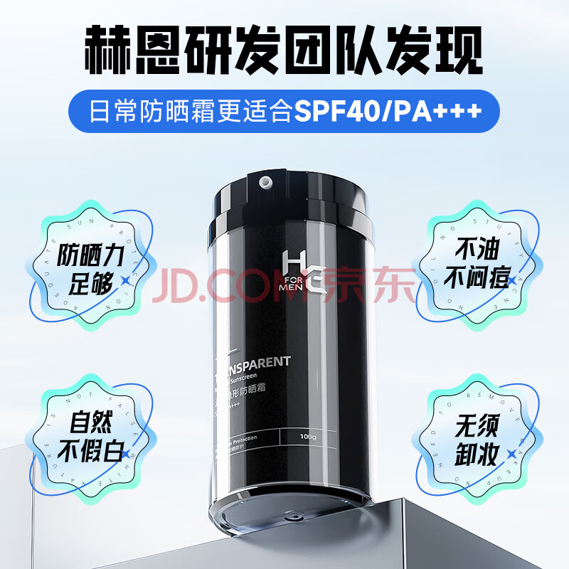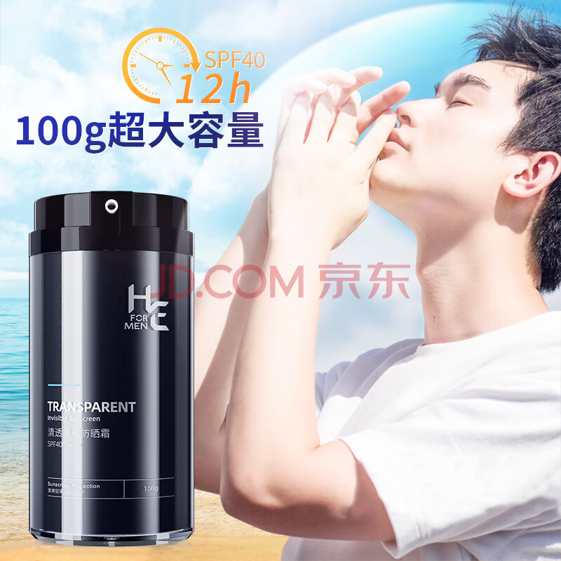 商品相册:赫恩(H&E)男士清爽防晒霜男100g SPF40/PA+++户外防晒乳霜 清爽水润第