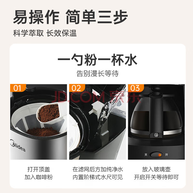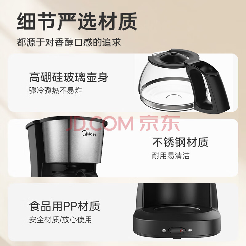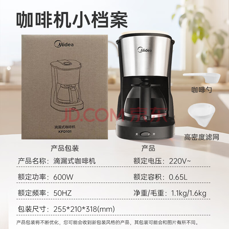 商品相册:美的(Midea)滴滤美式咖啡机半自动家用滴漏咖啡壶650ml容量恒热萃取小型水壶泡茶杯煮茶器茶壶KFD101送礼第1张/共8