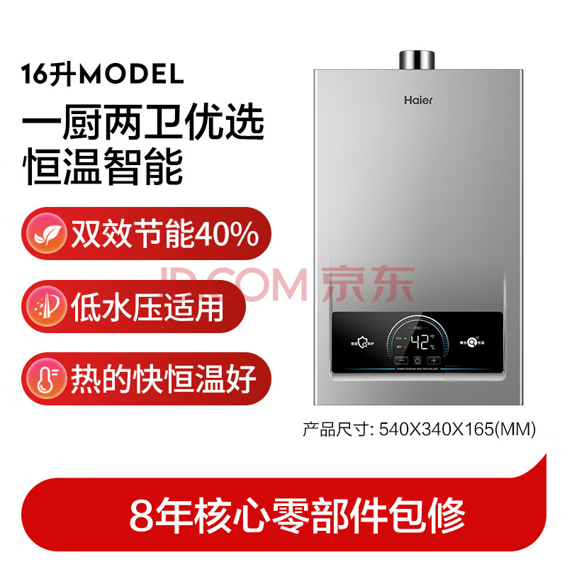 商品相册:海尔【MODEL】16升一厨两卫 恒温节能速热安全 低水压启动 上门安装燃气热水器天然气家用第
