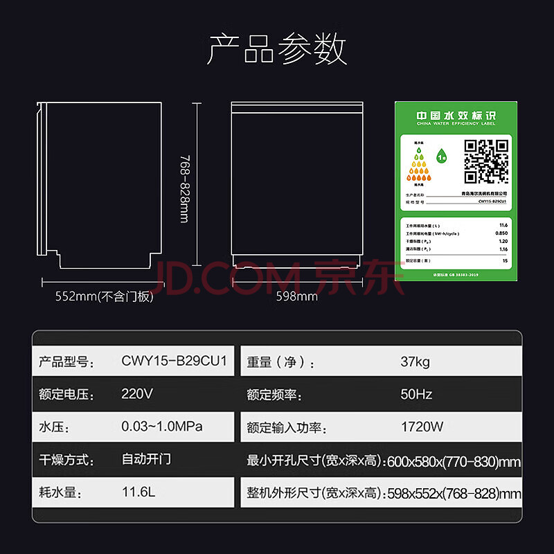 商品相册:卡萨帝(Casarte)15套嵌入式洗碗机一级水效 智能变频 分区精洗 智能开门速干CWY15-B29CU1第
