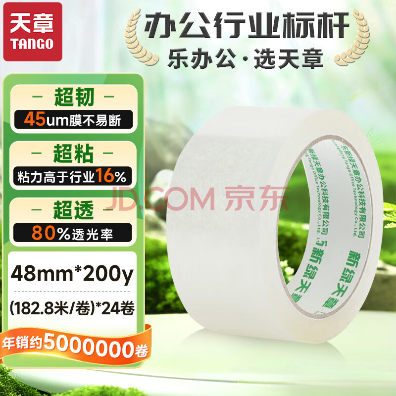 商品相册:天章 (TANGO)高透明胶带48mm*200y(182.8米)*45um 24卷/箱高透高粘快递打包封箱宽胶带工厂车间物流企业用品第