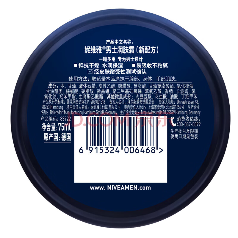 商品相册:妮维雅(NIVEA)男士【清爽不油腻】润肤霜75ml秋冬季干皮保湿面霜护肤生日礼物第