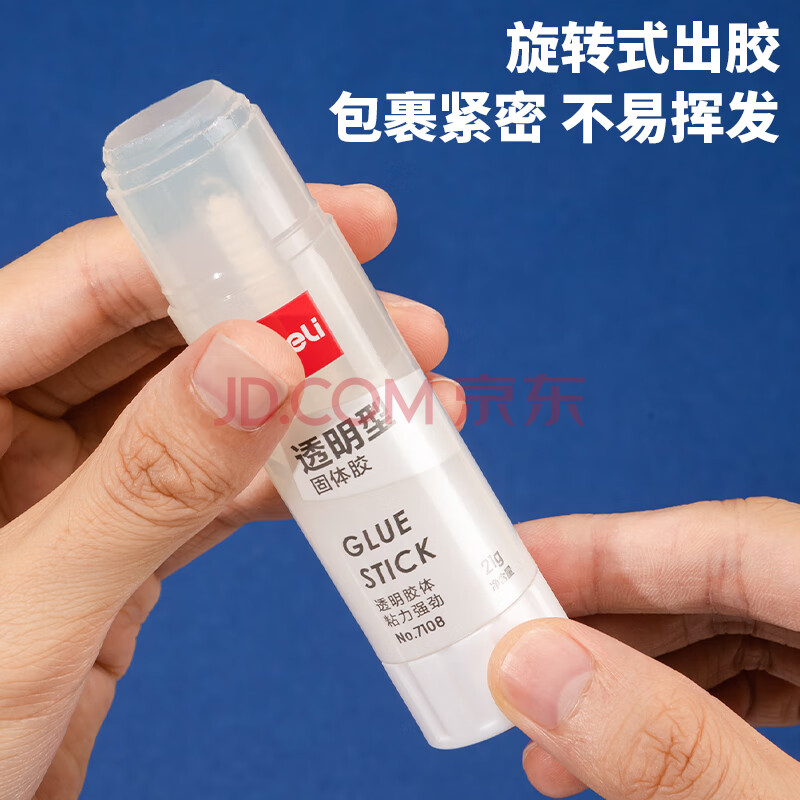 商品相册:得力(deli)21gACR固体胶 高粘果冻色透明胶棒 无甲醛强力胶水 学生文具 24支 办公用品 7108第1张/共5
