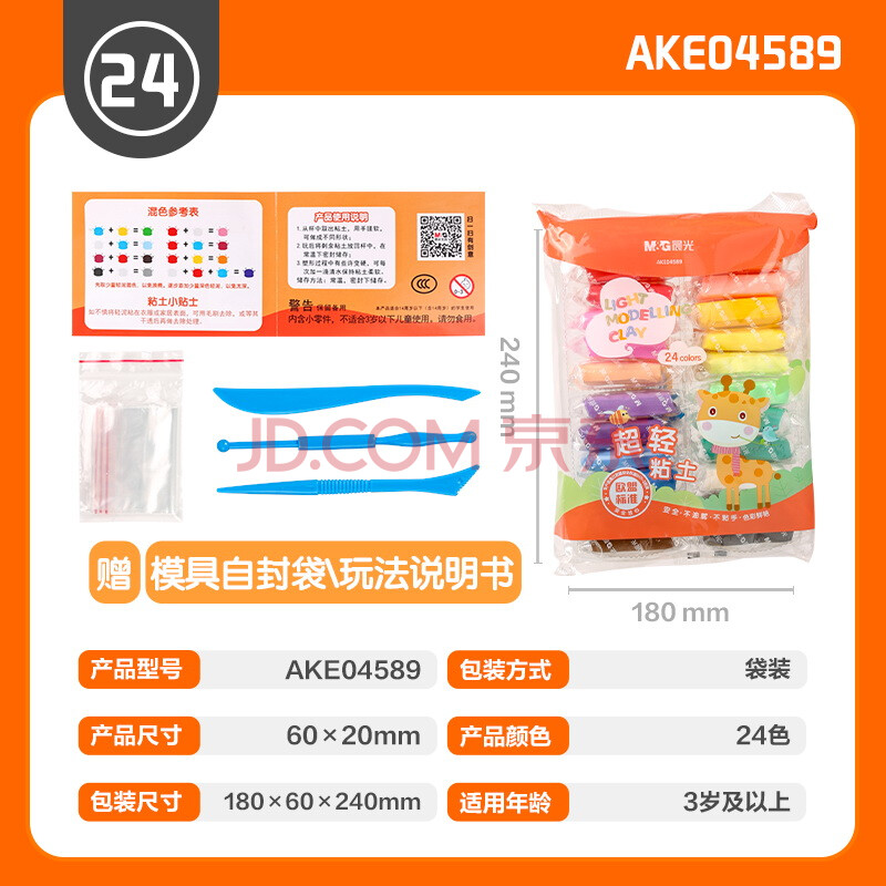 商品相册:晨光(M&G)小鹿袋装24色4D超轻粘土 儿童彩泥橡皮泥黏土幼儿园小学生手工diy玩具生日开学礼物第