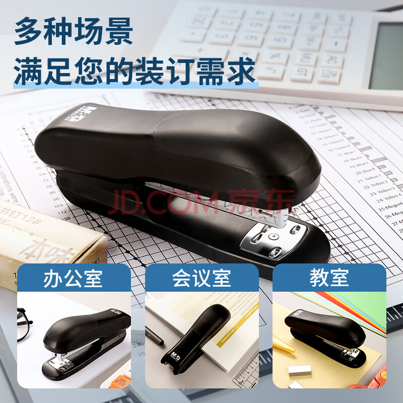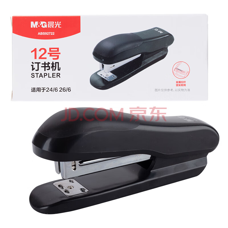 商品相册:晨光(M&G)12#订书机 耐用便携订书器 桌面省力装订办公用品 黑色ABS92722开学必备第