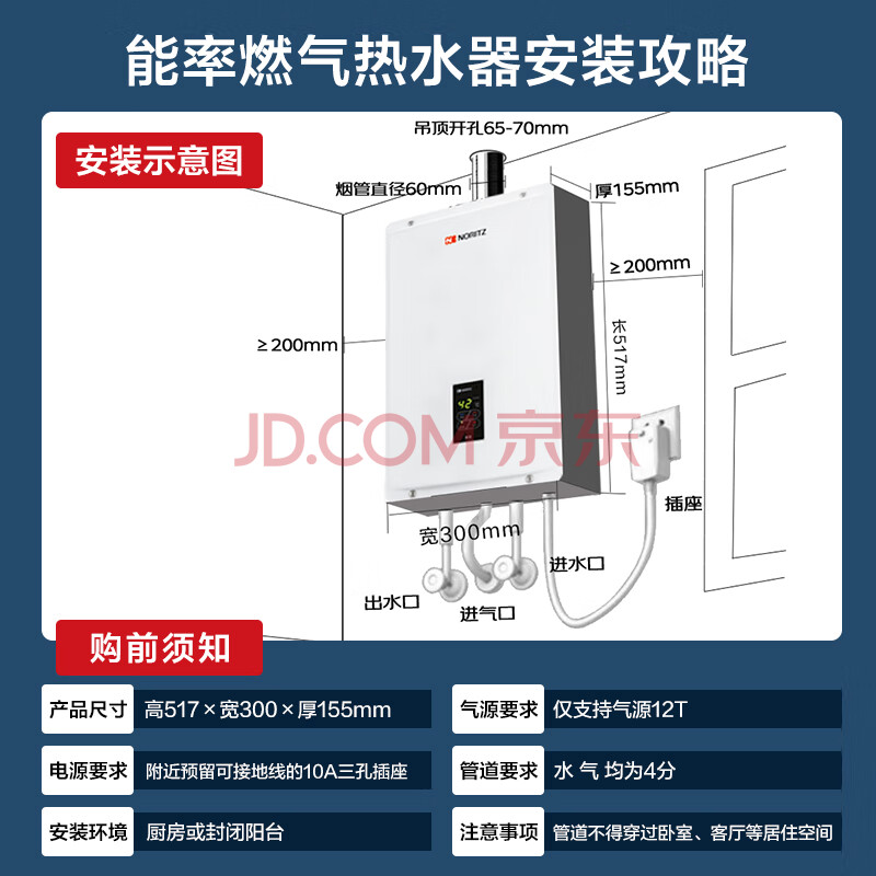 商品相册:能率(NORITZ)燃气热水器 10升 智能极速恒温 智能恒温 下置风机 低水压启动 上门安装10A3FEX(天然气)防冻*第