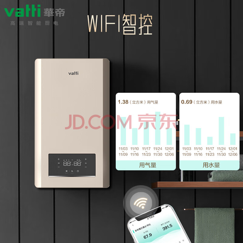商品相册:华帝 VATTI壁挂炉 L1P20-13BC1i 变频节能 WIFI智控 精控恒温 48重安全保护第