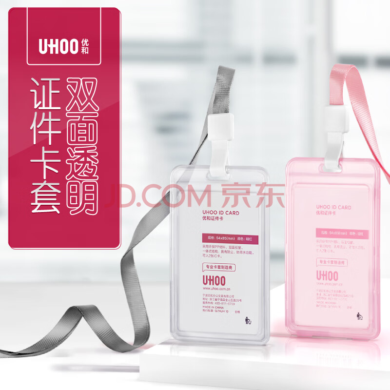 商品相册:优和(UHOO)双面透明证件卡套 竖式工牌卡套 1个卡套+1根挂绳 工作牌公交卡套胸牌员工证件套 6110第