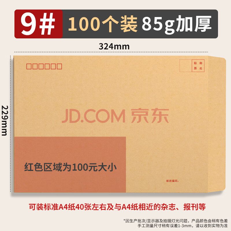 商品相册:西玛(SIMAA)【全网低价】100张C4-9号牛皮纸信封 A4信封文件袋 邮局标准信封发票工资袋324*229mm 6582第