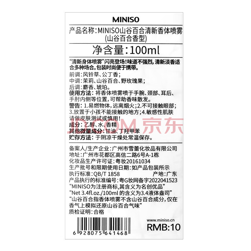 商品相册:名创优品香体喷雾 淡香香氛空气清新剂生日礼物 山谷百合100ml*2第