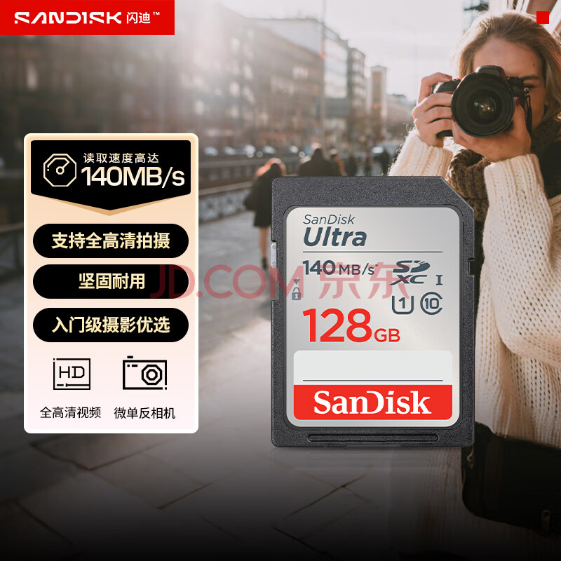 商品相册:闪迪(SanDisk)128GB SD内存卡 U1 C10 至尊高速存储卡 读速140MB/s 全高清视频 数码相机理想伴侣第1张/共7