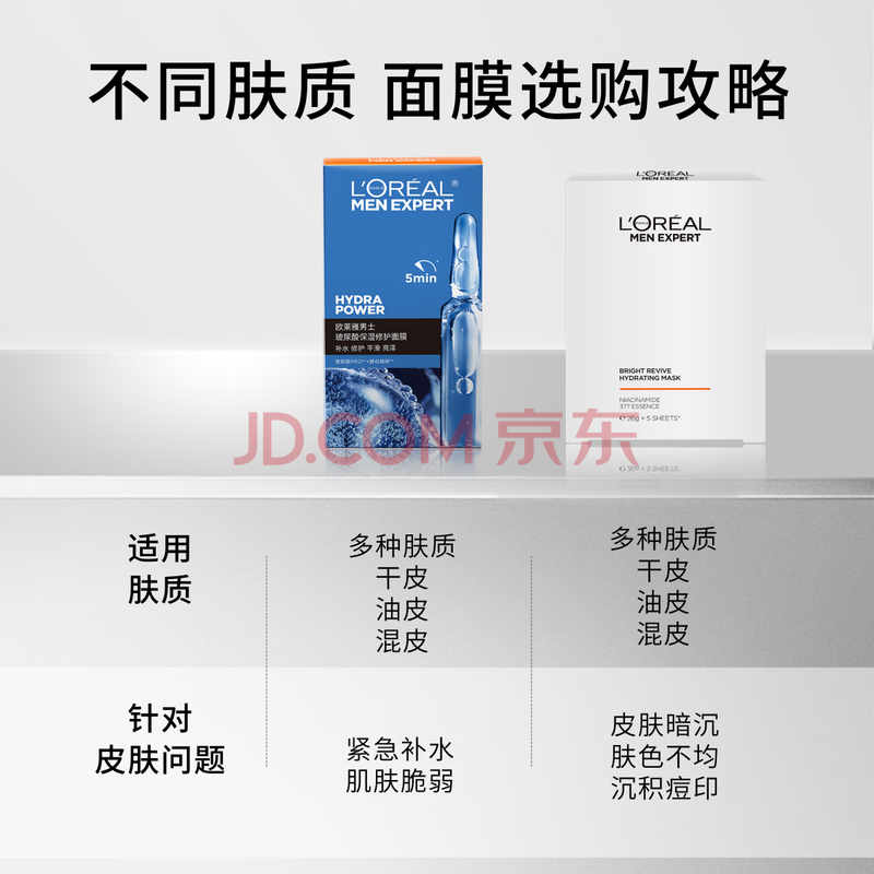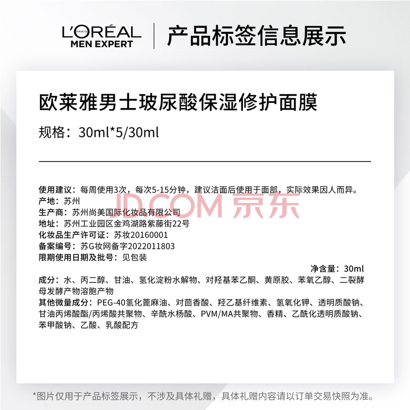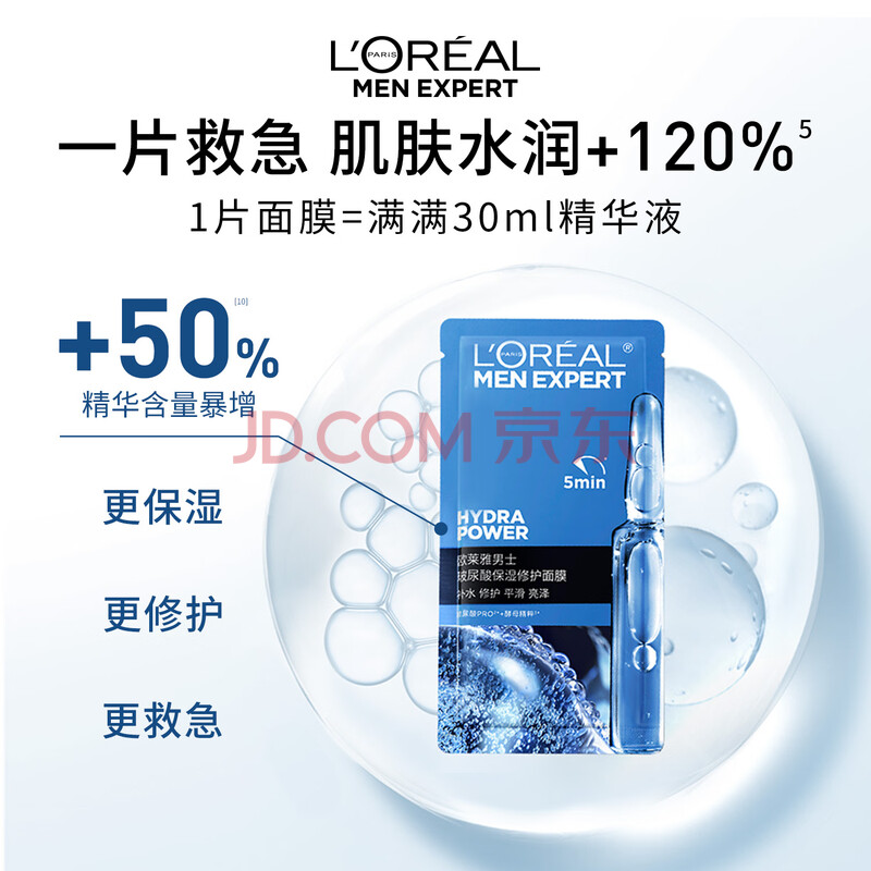 商品相册:欧莱雅男士玻尿酸保湿面膜5片补水锁水强韧屏障男士护肤品礼物第