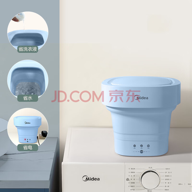 商品相册:美的(Midea)迷你折叠便携式小型洗衣机 冰盐蓝 MZD05-01L第