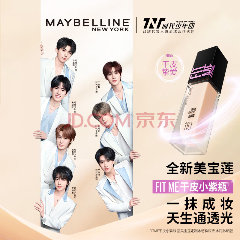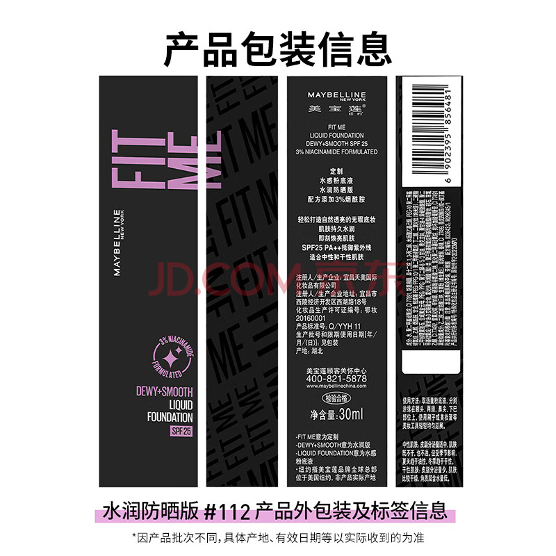 商品相册:美宝莲FITME粉底液干皮小紫瓶提亮遮瑕干皮水润防晒112 生日礼物女第
