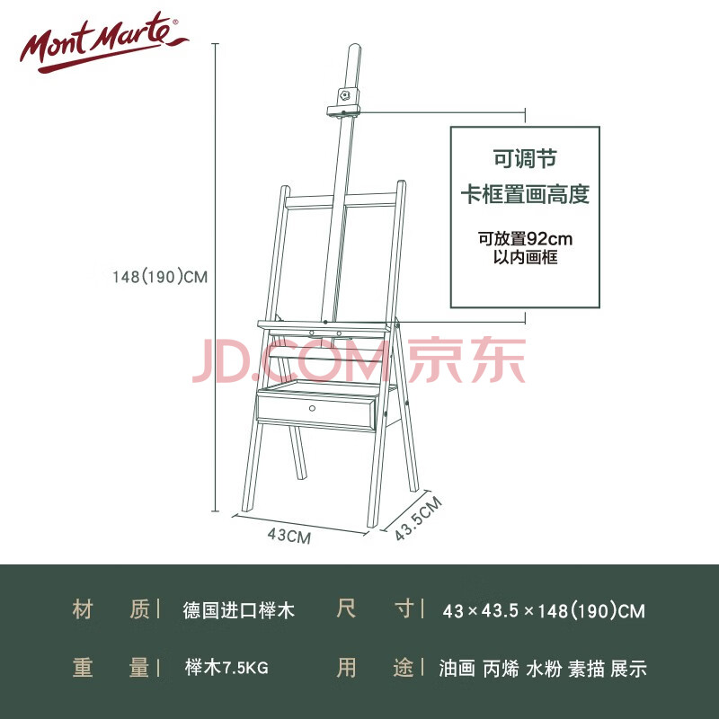 商品相册:蒙玛特(Mont Marte)榉木画架 画板画架美术素描支架抽屉落地架套装儿童升降前倾绘画架子SX-MEA0053 B-HB-001美术写生第