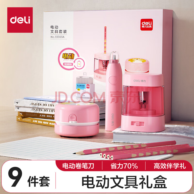 商品相册:得力(deli)学生电动文具礼盒套装大礼包桌面吸尘器电动卷笔刀洞洞铅笔橡皮擦考试生日礼物开学考试文具9件第1张/共7