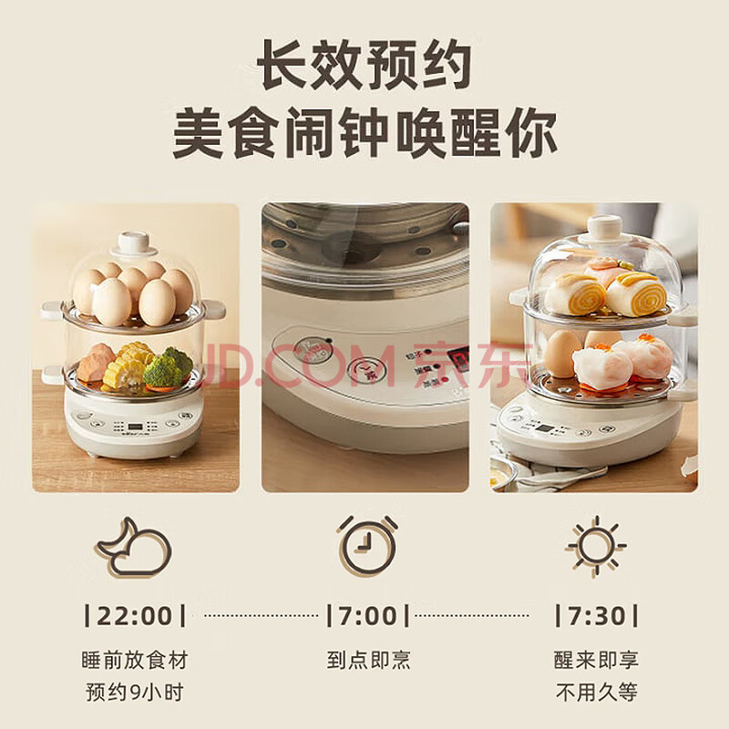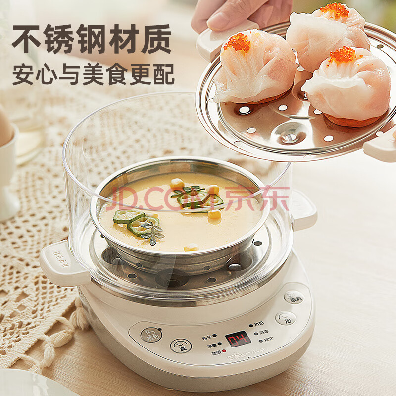 商品相册:小熊(Bear)煮蛋器 双层家用多功能蒸蛋器 不锈钢早餐蒸点心蒸锅 可预约定时自动断电蒸锅 ZDQ-C14Q8第
