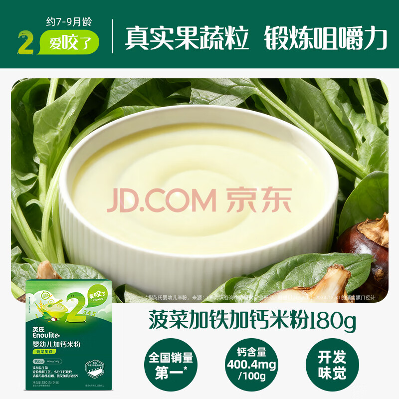 商品相册:英氏婴幼儿米粉180g菠菜加铁加钙营养宝宝辅食米糊盒装小袋保鲜6月龄+第1张/共7