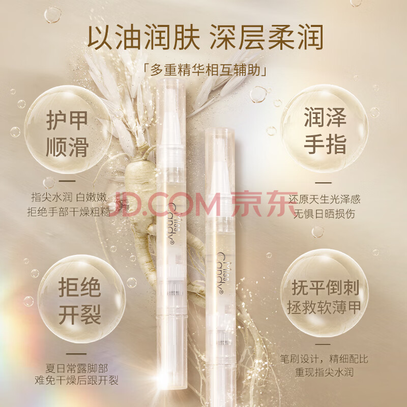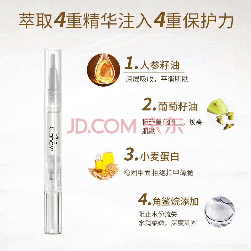 商品相册:Miss Candy护甲油指缘油透明营养油护甲薄脆软断裂分层人参籽精华笔2ml第1张/共8
