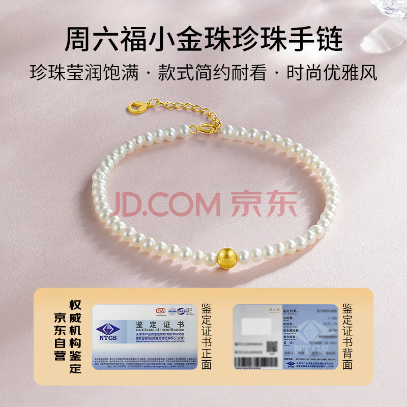 商品相册:周六福18K金珍珠手链手串女生日礼物X0710527 约16+3cm第