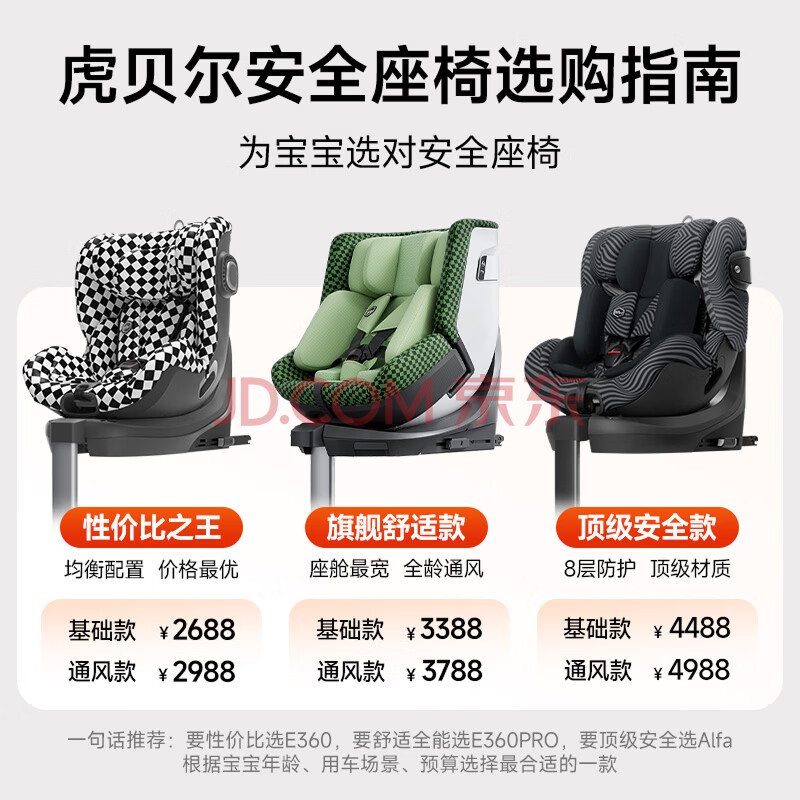 商品相册:虎贝尔(HBR)E360儿童安全座椅0-6-12岁婴儿宝宝车载通风散热i-Size认证黑灰色第