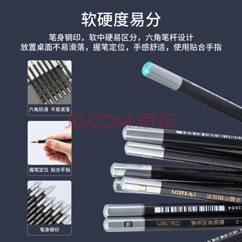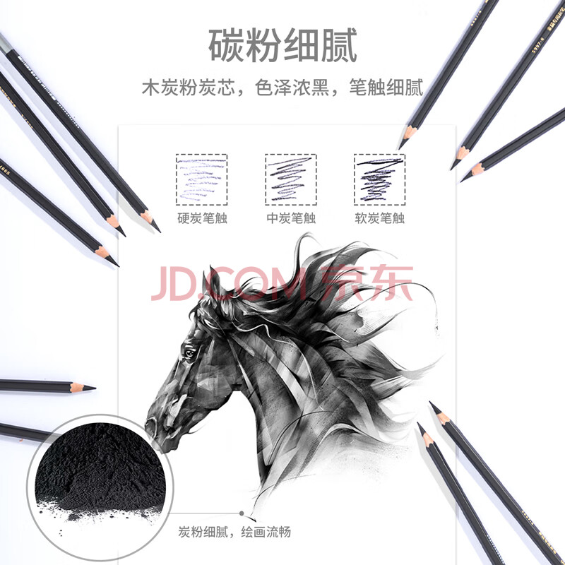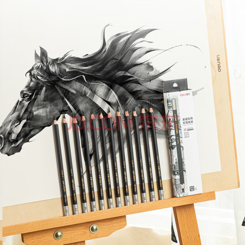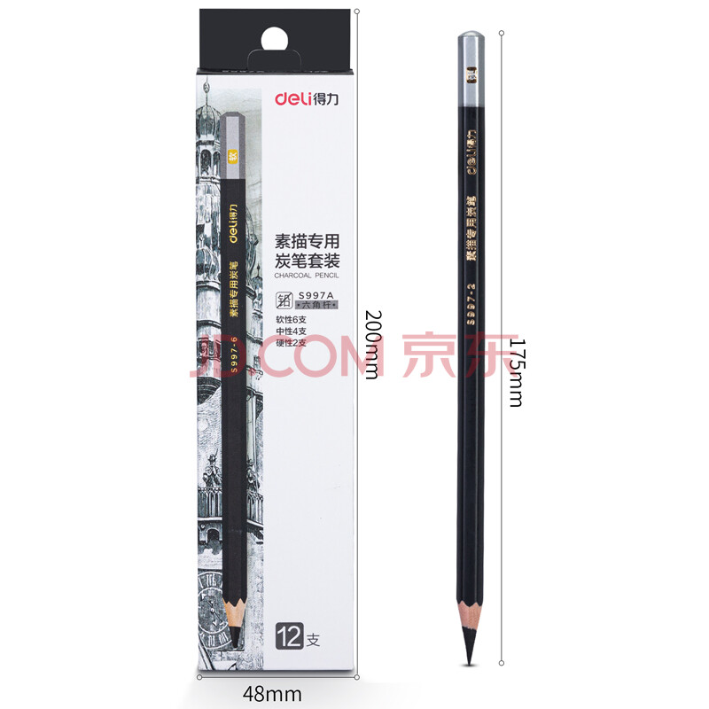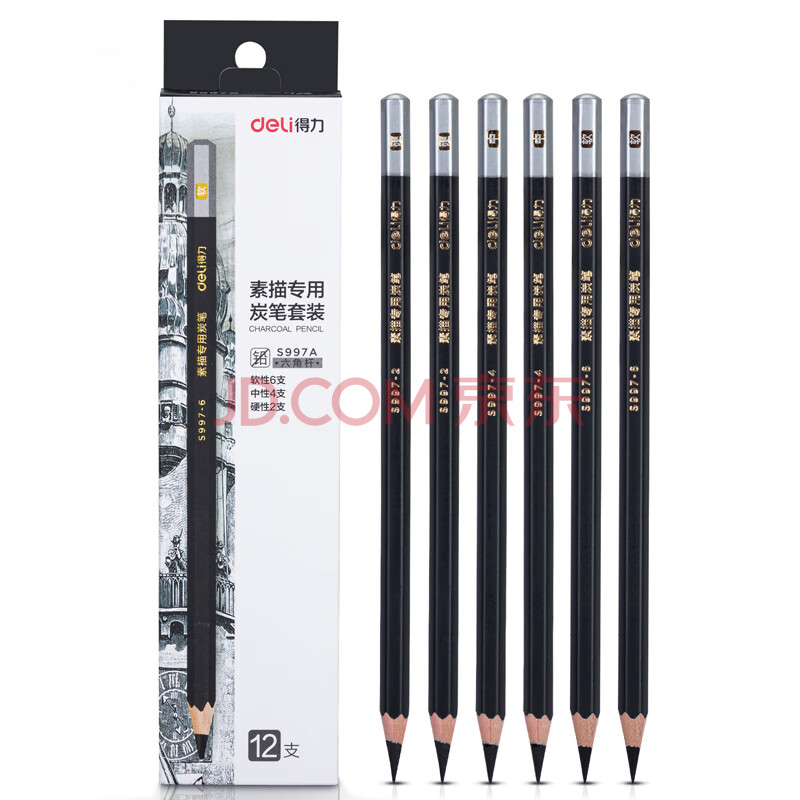 商品相册:得力(deli)素描炭笔初学者碳笔软中硬三种硬度绘画美术生专用12支/盒S997A涂鸦划线第